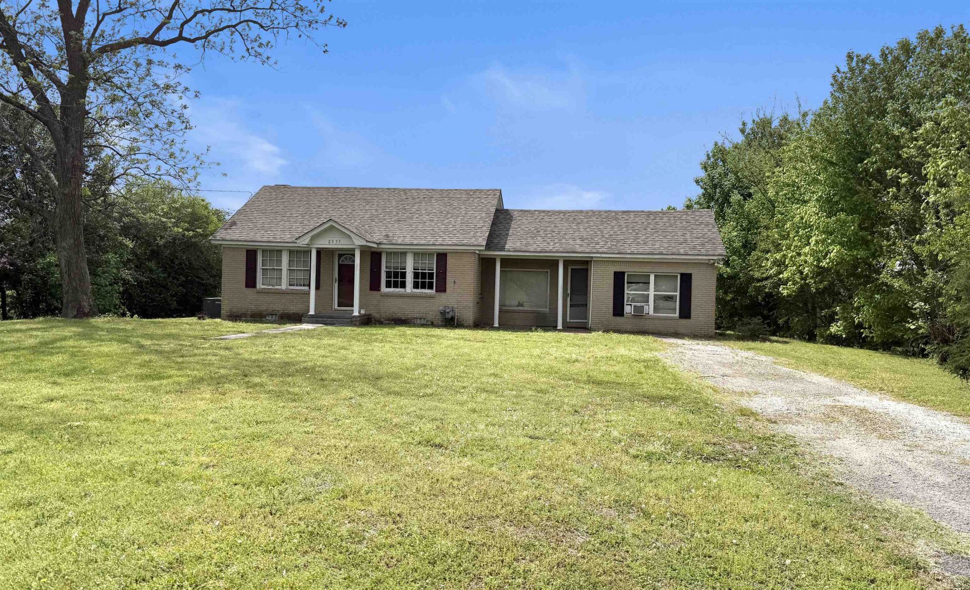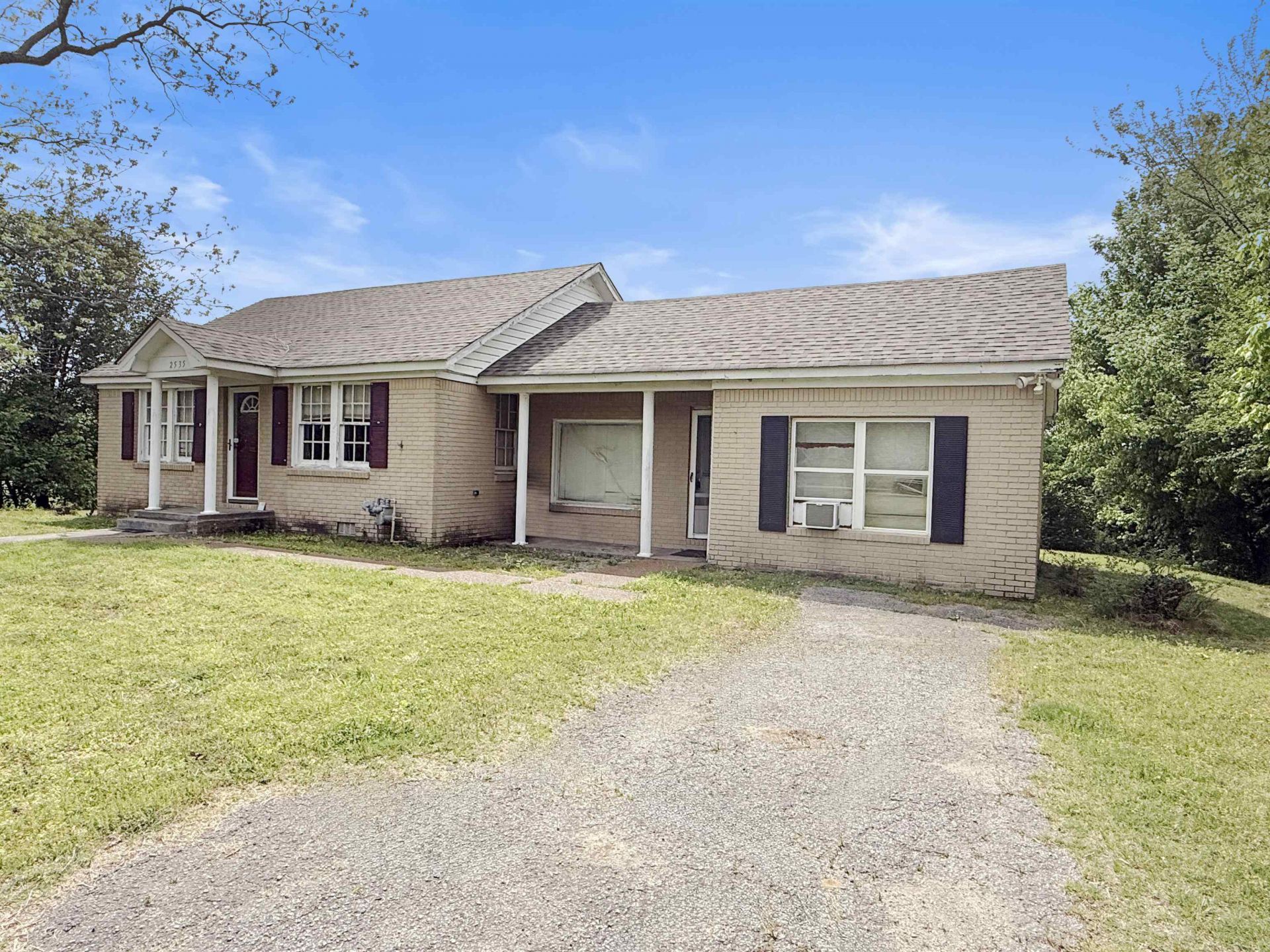 Great investment property in a great location. This home sits off the road with a great view of a neighboring pasture and pond in the back yard. This 2 bedroom 1 bath brick home with large living room, kitchen, separate living room and den will make a great project for investors who want to flip or add to their rental portfolio. Property is being sold as is.